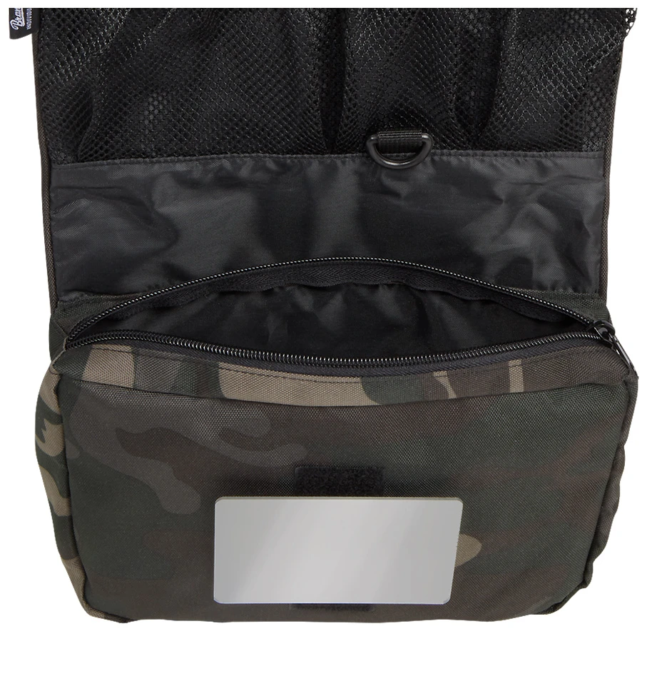 Ein besonderes Highlight der Brandit Toilettentasche ist der abklettbarer, bruchsicherer Spiegel, der immer griffbereit ist und Dir auch unterwegs ein perfektes Styling ermöglicht. Der drehbare Kunststoff-Haken zum Aufhängen sorgt dafür, dass Du die Tasche überall bequem aufhängen kannst.