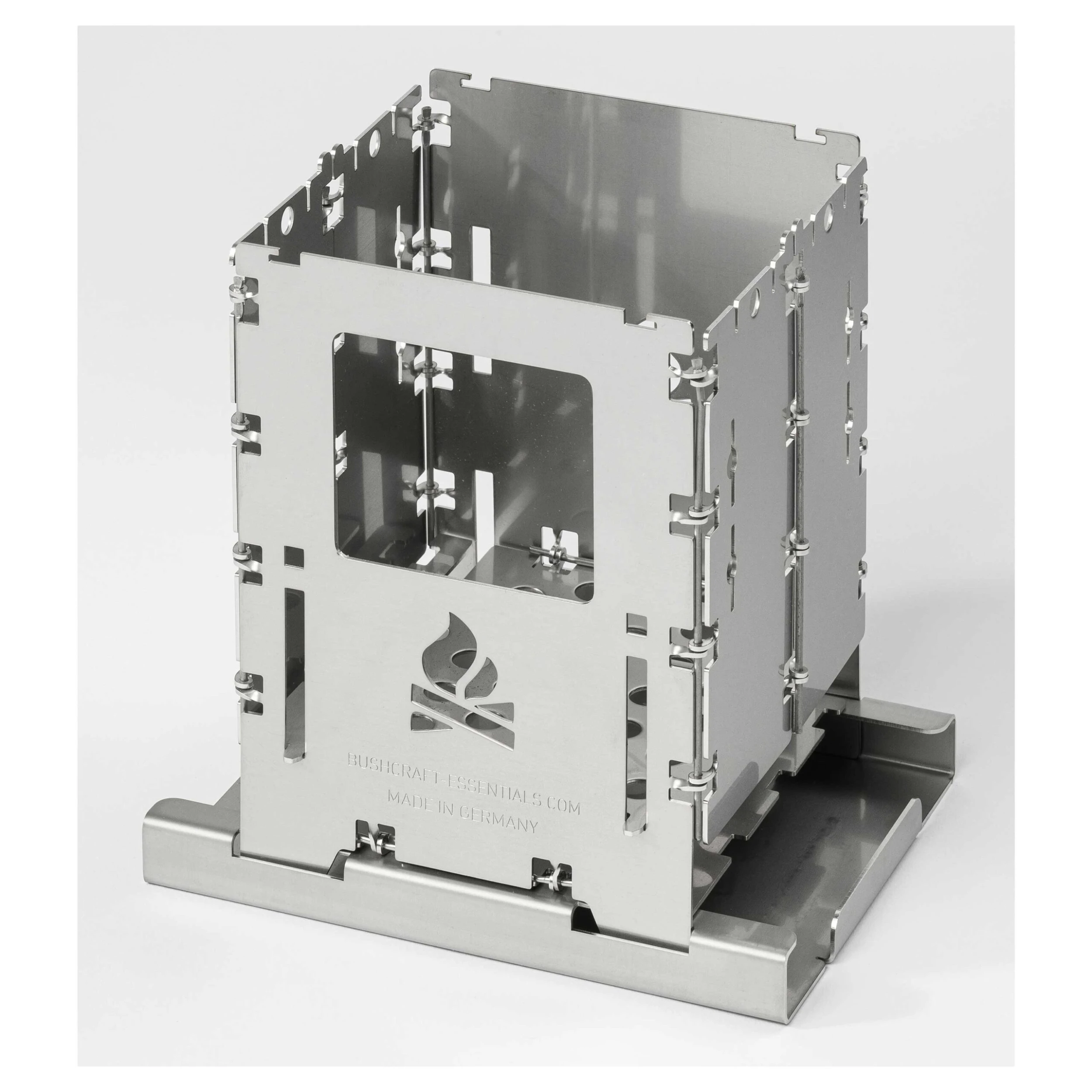 Dieser Bushcraft Essentials Multifunktionseinschub überzeugt mit praktischen Funktionen und erleichtert das Kochen mit der ohnehin funktionalen Bushbox LF zusätzlich. Diese kann beispielsweise sicher und platzsparend in dem kleinen Tool verstaut werden, sodass der Transport im Rucksack problemlos möglich ist. Auch dient der Einschub als robuste Unterlage, die Sie mit nur einem Handgriff in den dafür vorgesehenen Aussparungen einrasten lassen können. Auf diese Weise wird auf unebenem Gelände nicht nur die nötige Stabilität hergestellt, auch schützt der Multifunktionseinschub den Kocher vor Glut und fängt Feuerrückstände auf. Selbst beim Entfachen der Flammen ist dieses Zubehör hilfreich, denn mit ihm können Sie Feathersticks schnitzen oder Rinde schaben.