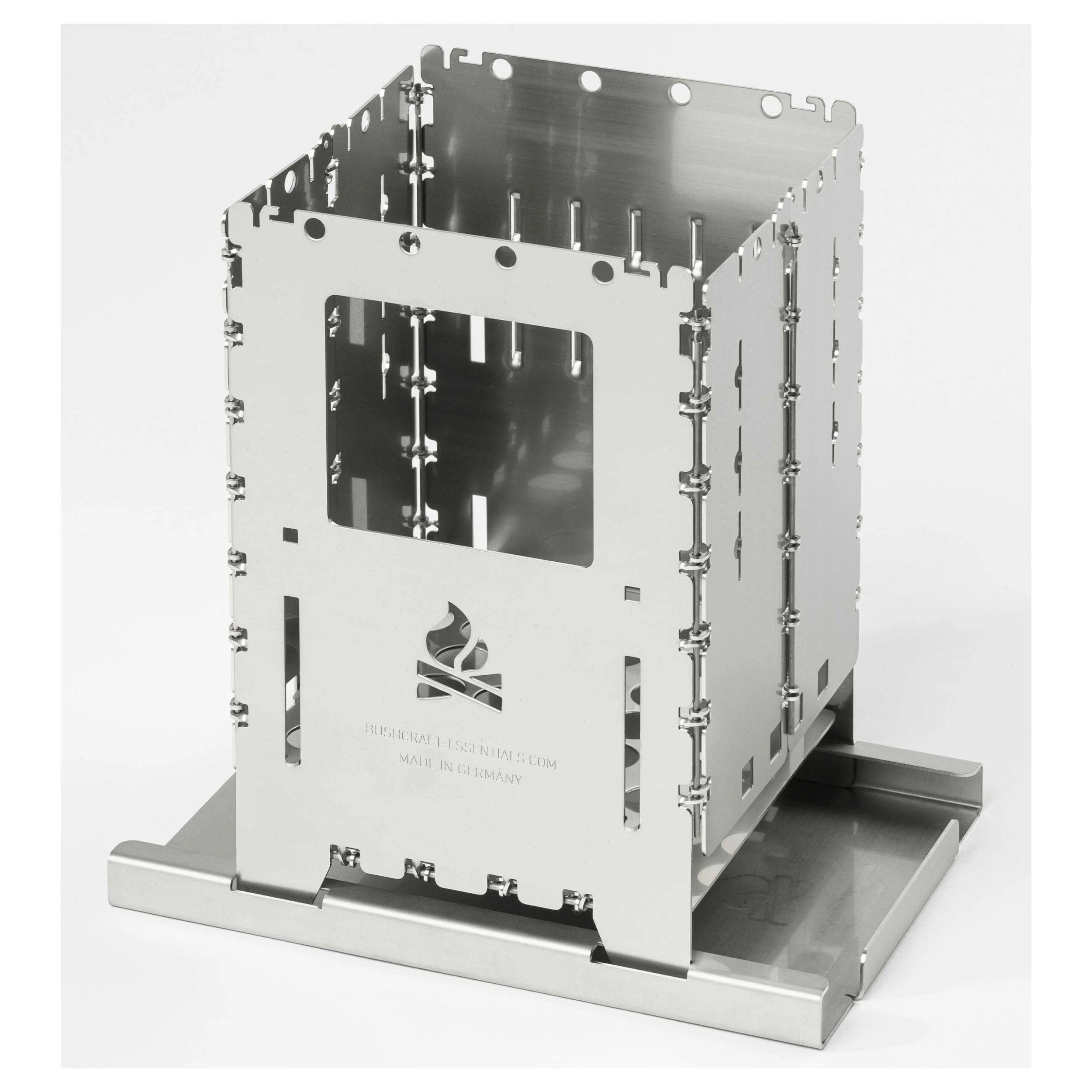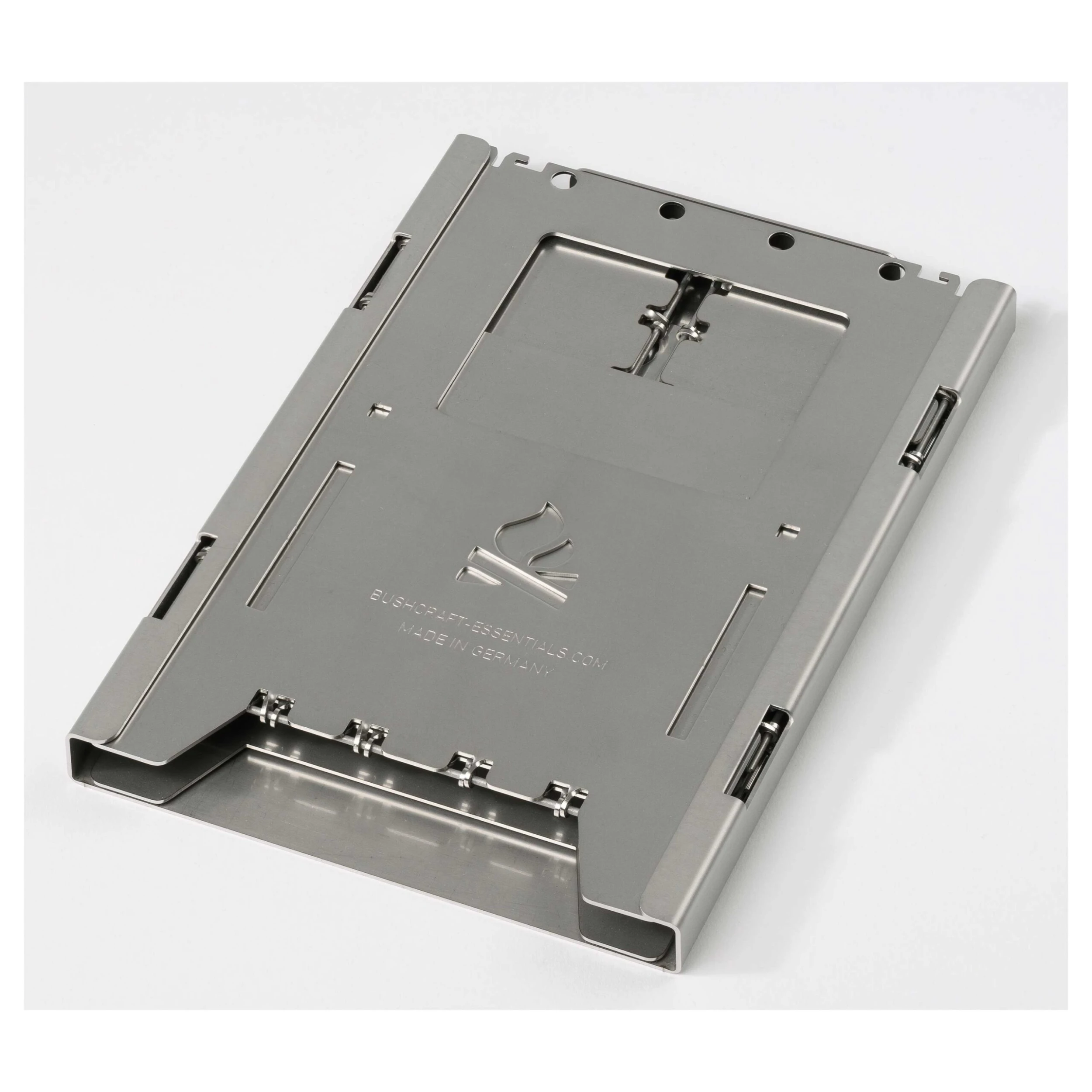 Dieser Bushcraft Essentials Multifunktionseinschub überzeugt mit praktischen Funktionen und erleichtert das Kochen mit der ohnehin funktionalen Bushbox XL zusätzlich. Diese kann beispielsweise sicher und platzsparend in dem kleinen Tool verstaut werden, sodass der Transport im Rucksack problemlos möglich ist. Auch dient der Einschub als robuste Unterlage, die Sie mit nur einem Handgriff in den dafür vorgesehenen Aussparungen einrasten lassen können. Auf diese Weise wird auf unebenem Gelände nicht nur die nötige Stabilität hergestellt, auch schützt der Multifunktionseinschub den Kocher vor Glut und fängt Feuerrückstände auf. Selbst beim Entfachen der Flammen ist dieses Zubehör hilfreich, denn mit ihm können Sie Feathersticks schnitzen oder Rinde schaben.