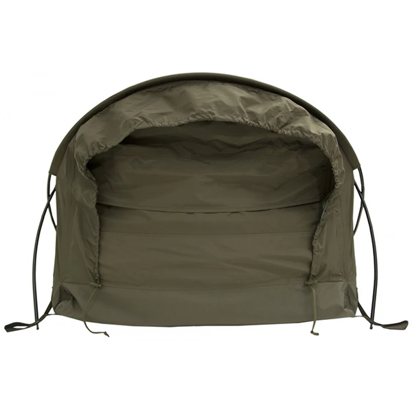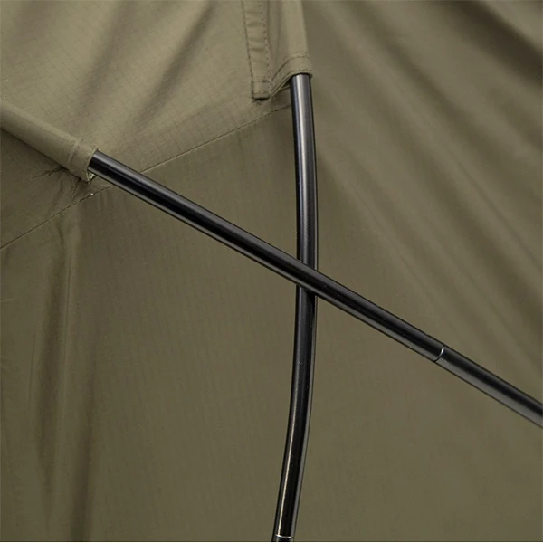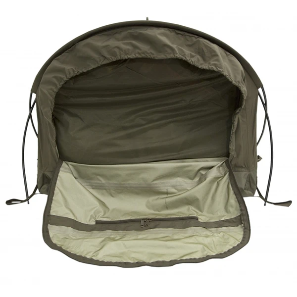 Dieses Minizelt hat am Kopfende eine große Öffnung, die durch 2 freistehende Zeltstangen gehalten wird und genügend Bewegungsfreiheit für den Scharfschützen bietet.