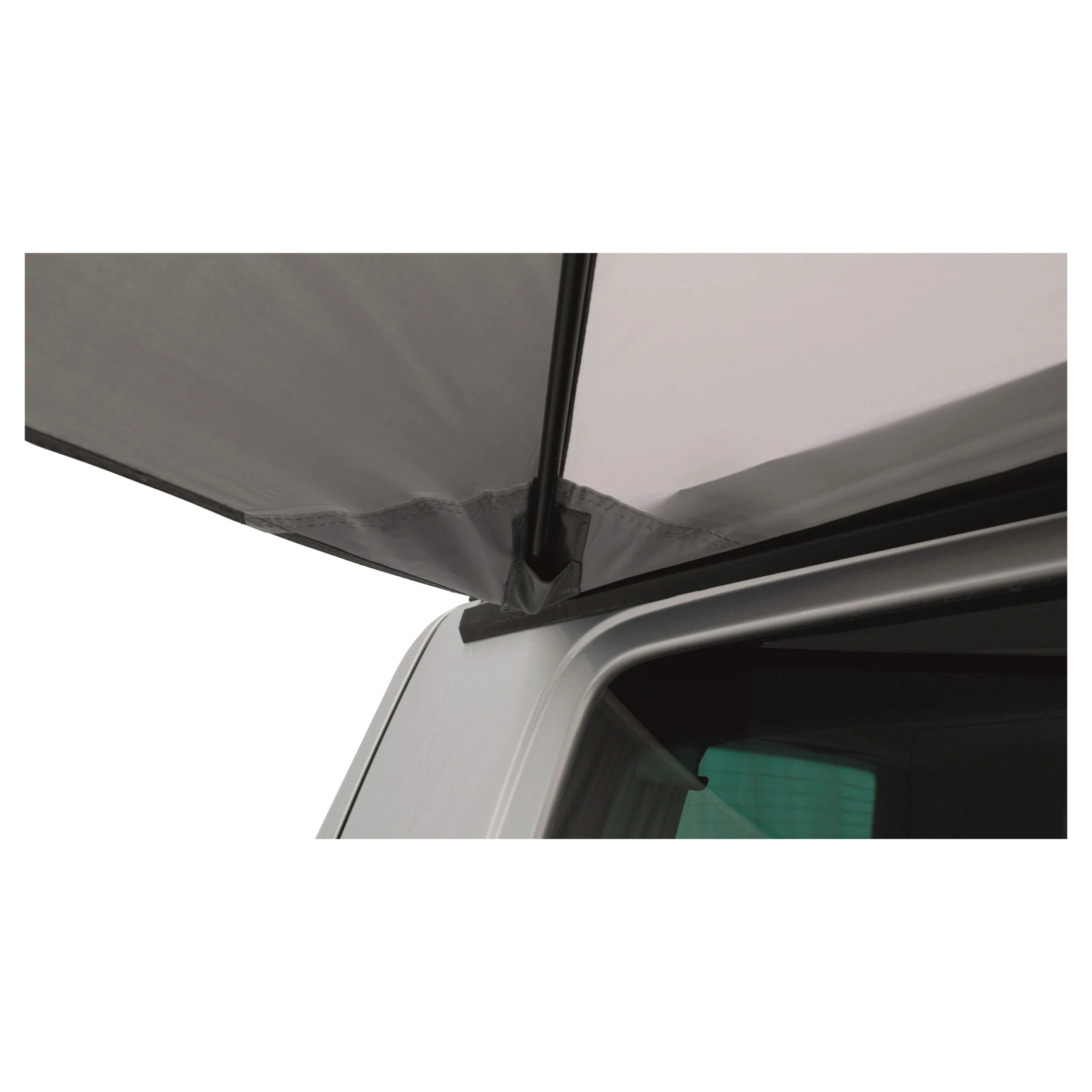 Das Easy Camp Vordach Flex Canopy granite grey lässt sich schnell und einfach an Wohnmobil, Wohnwagen oder Kleinbus befestigen. Es bietet sofortigen Schatten und Regenschutz und erweitert Deinen Lebensraum auf Campingplätzen, beim Wildcampen oder an Strandtagen. Die beiden zusammensetzbaren Stahlstangen und die kreuzverstrebten Glasfaserstangen, die die Mittelhöhe unter Spannung anheben, sorgen für reichlich Stehhöhe und verhindern ein Flattern des Stoffes.