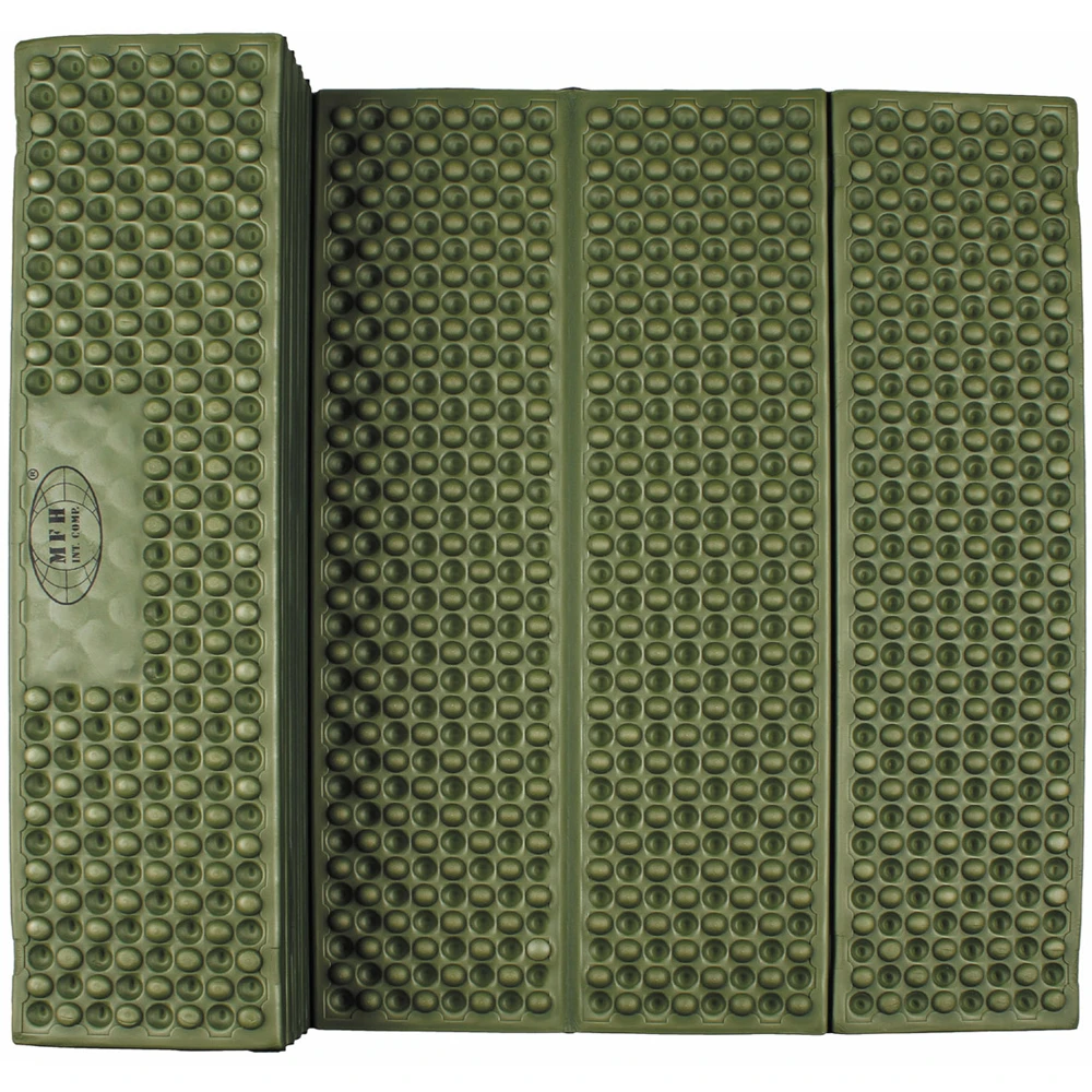 Praktische Thermomatte aus robustem Spezialschaumstoff. Die rutschhemmende und hervorragend isolierende Noppenstruktur schützt bei kalten Temperaturen. Mit zwei Transport-Gummibändern.