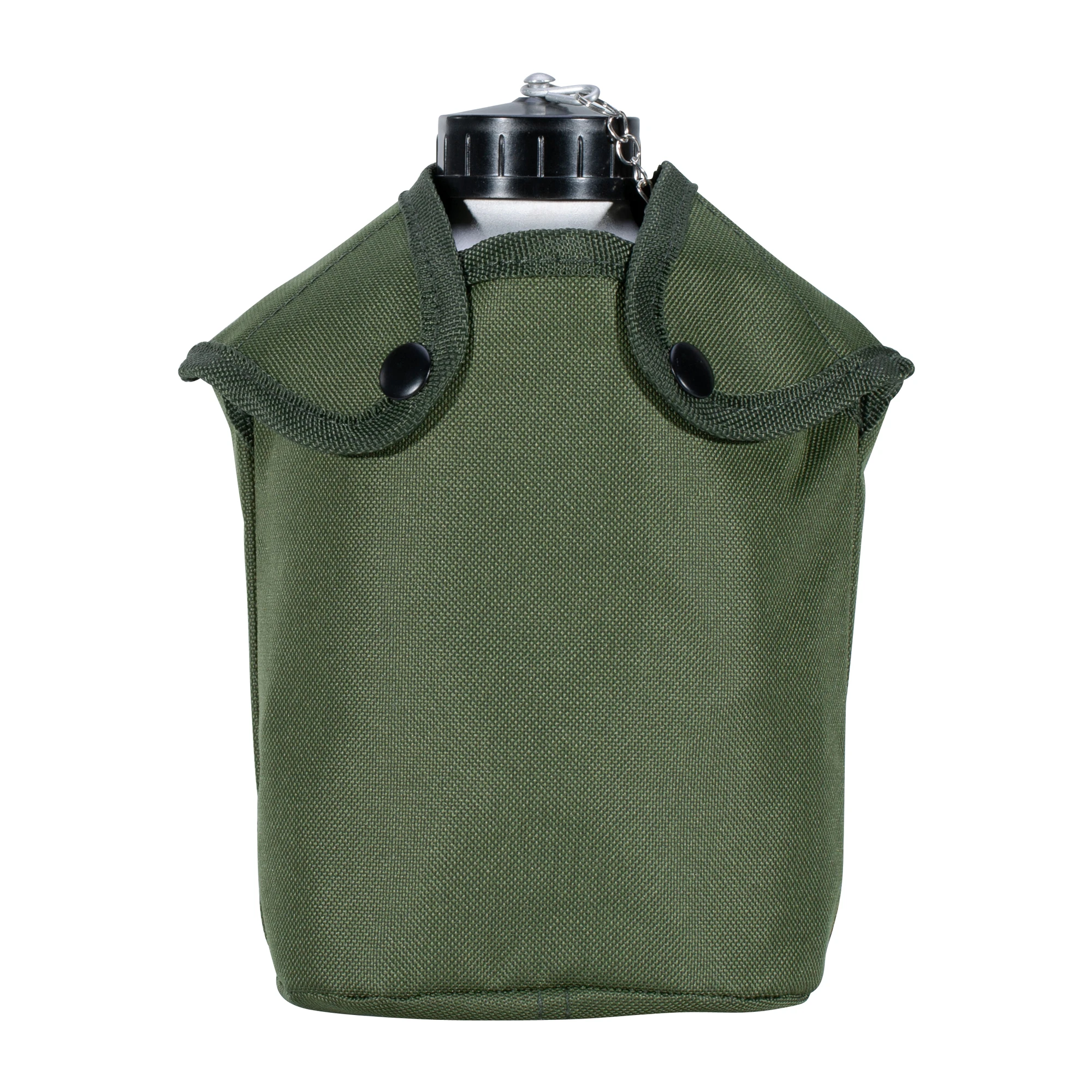Eine französische Aluminium-Feldflasche mit Schraubverschluss. Lieferung inklusive Feldflaschenhülle aus Baumwolle und einem praktischen Aluminiumbecher.
