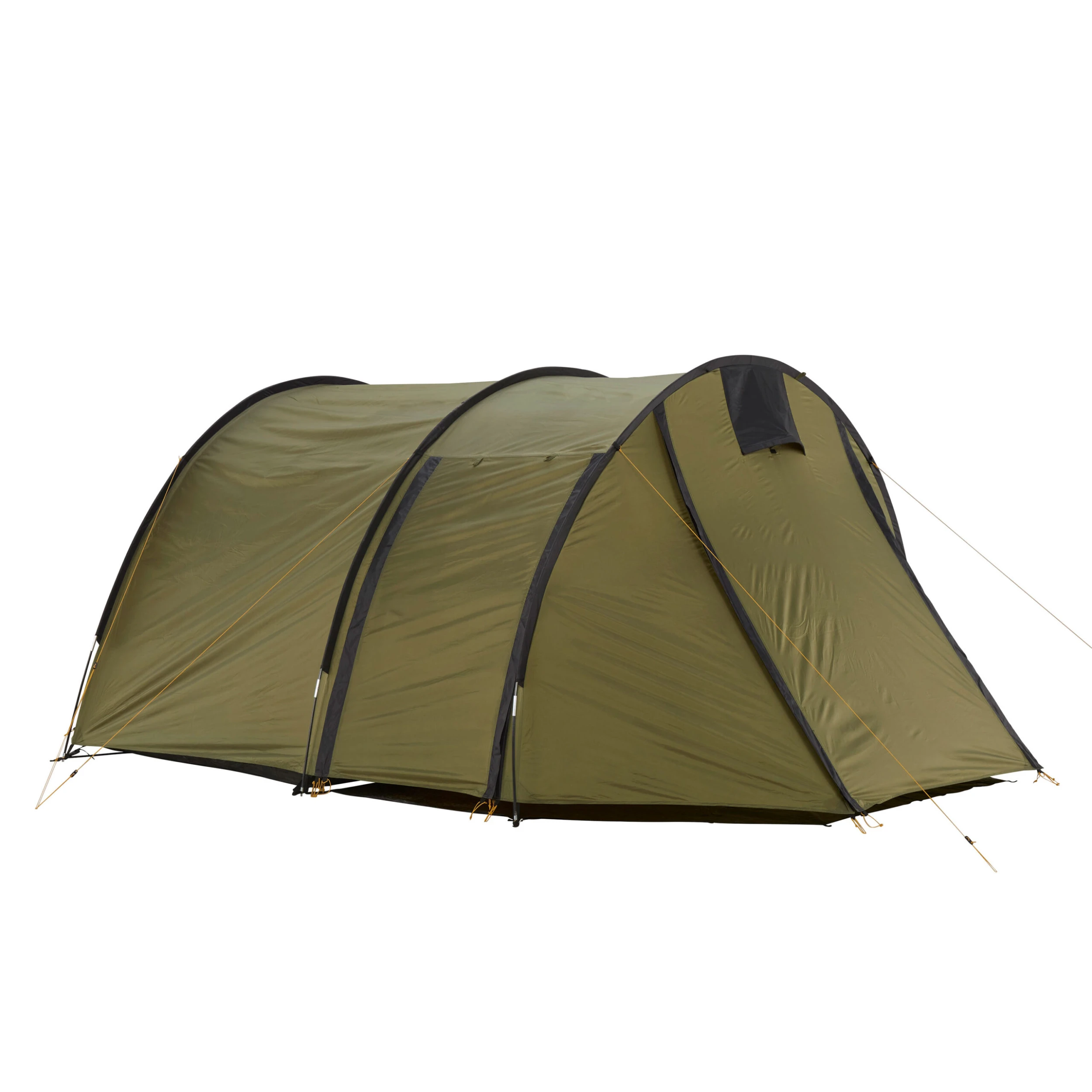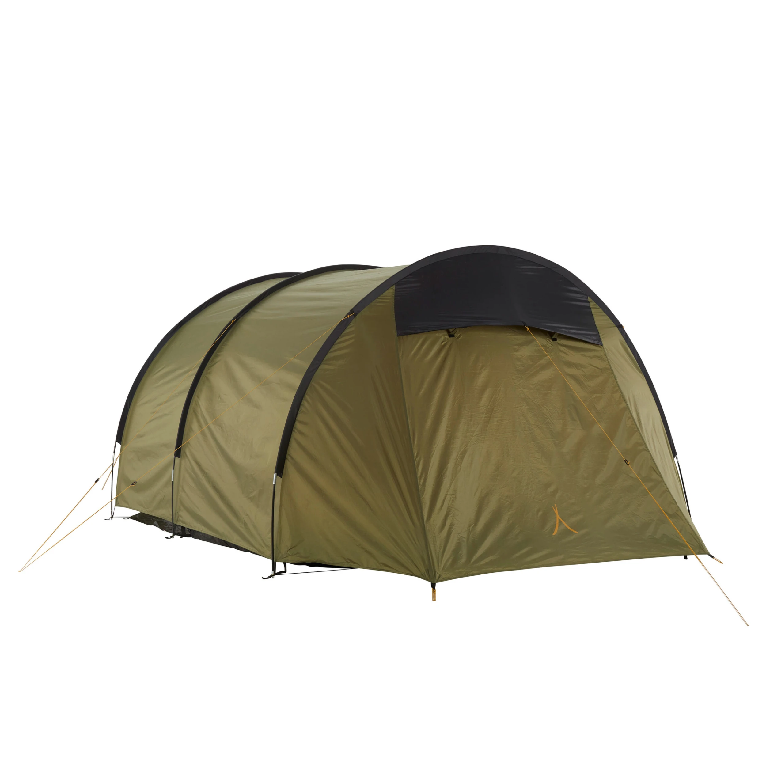 Das Robson 3 eignet sich für drei Personen. Außen- und Innenzelt sind fest miteinander vernäht, wodurch der Aufbau erleichtert wird. Die große Apside bietet viel Platz, um Ihre Ausrüstung ordentlich und geschützt vor Regen zu verstauen. Ergänzenden Stauraum bietet eine Tasche im Innenzelt, in der Sie beispielsweise persönliche Gegenstände aufbewahren können. An einem Haken in der Zeltmitte kann eine Camping-Lampe angebracht werden. Die Tunnelform garantiert einen großen Längswiderstand mit hoher Windstabilität. Unterstützt wird dies durch das robuste Fiberglas-Gestänge. Die hochgezogene Bodenwanne schützt zuverlässig vor Feuchtigkeit und Insekten. Angenehme Belüftung ist durch die Moskitonetze im Innenzelt und die Lüftungshauben im Außenzelt möglich. Außerdem lassen sich beide Eingänge komplett öffnen und können auch als Wind- oder Sonnenschutz dienen.