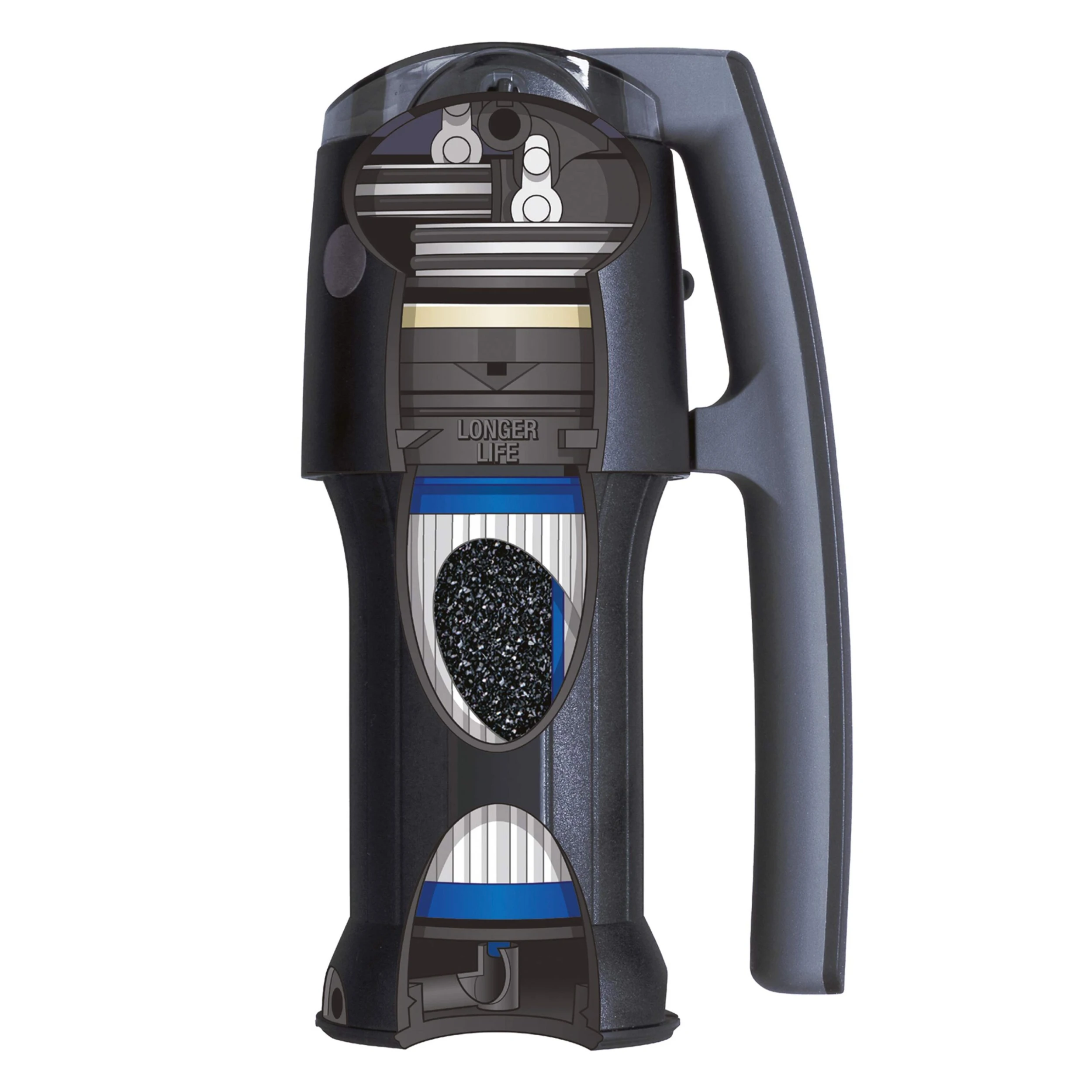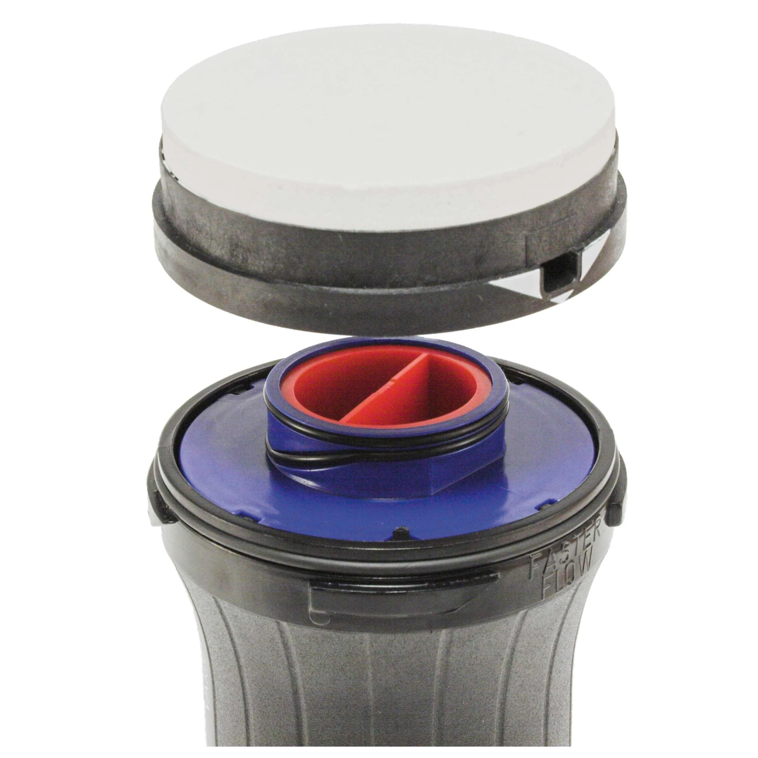 – Technologie: AntiClog-Kartusche mit 0,2 Mikron Glasfasern (keine Reinigung nötig), Aktivkohlegranulat, Keramik-Vorfilter, Doppelkolben, Gummifuss, Flaschengewinde integriert
