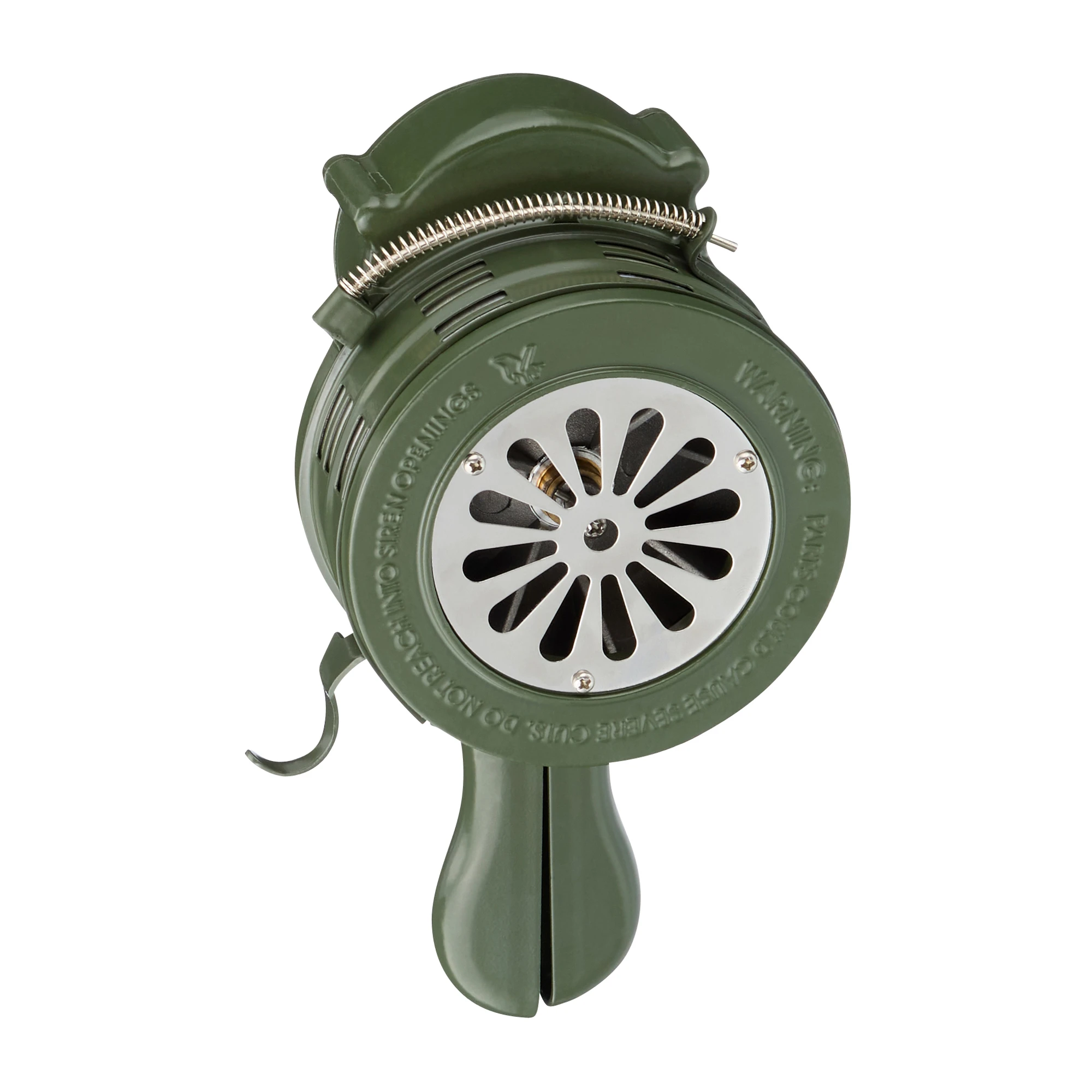 Die handbetriebene Luftschutzsirene ist ein energieunabhängiges Alarm- und Signalgerät, das früher bei Fliegeralarm bzw. Feueralarm verwendet wurde. Mit minimalem Kraftaufwand wird eine maximale Lautstärke erreicht. Durch leichtes Drehen der Kurbel wird schon bei geringer Umdrehung einen Heulton erzeugt, der sich mit Erhöhung der Drehzahl steigert. Mit dem Drücken des Hebels (dabei öffnen sich Klappen und führen zusätzliche Luft zu) entwickelt sich ein ohrenbetäubender Ton, der weithin gehört wird.