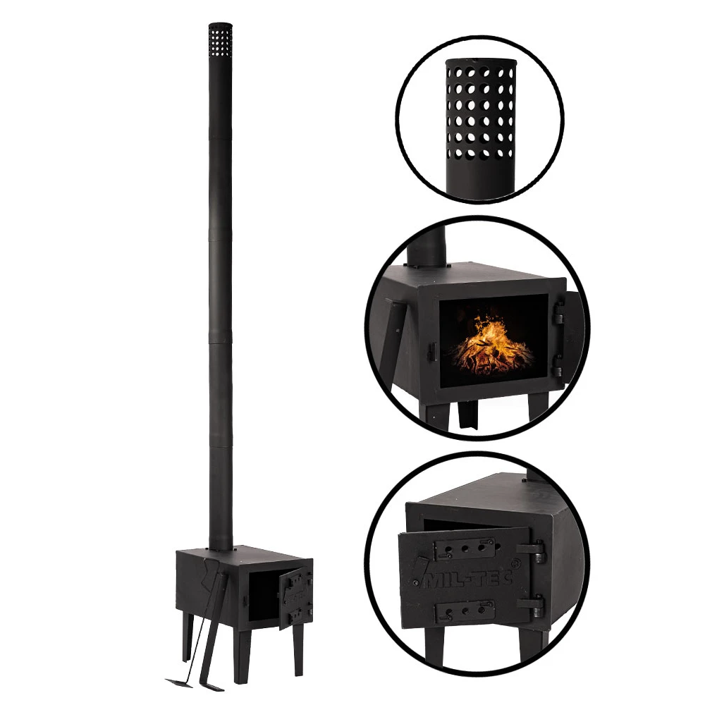 Der Mil-Tec Zeltofen eignet sich für den Betrieb in feuerfesten Zelten mit Öffnung, Tipis, Jurten oder im Freien. Mit dem Grillkorpus ist das Erwärmen von Essen ein Leichtes.