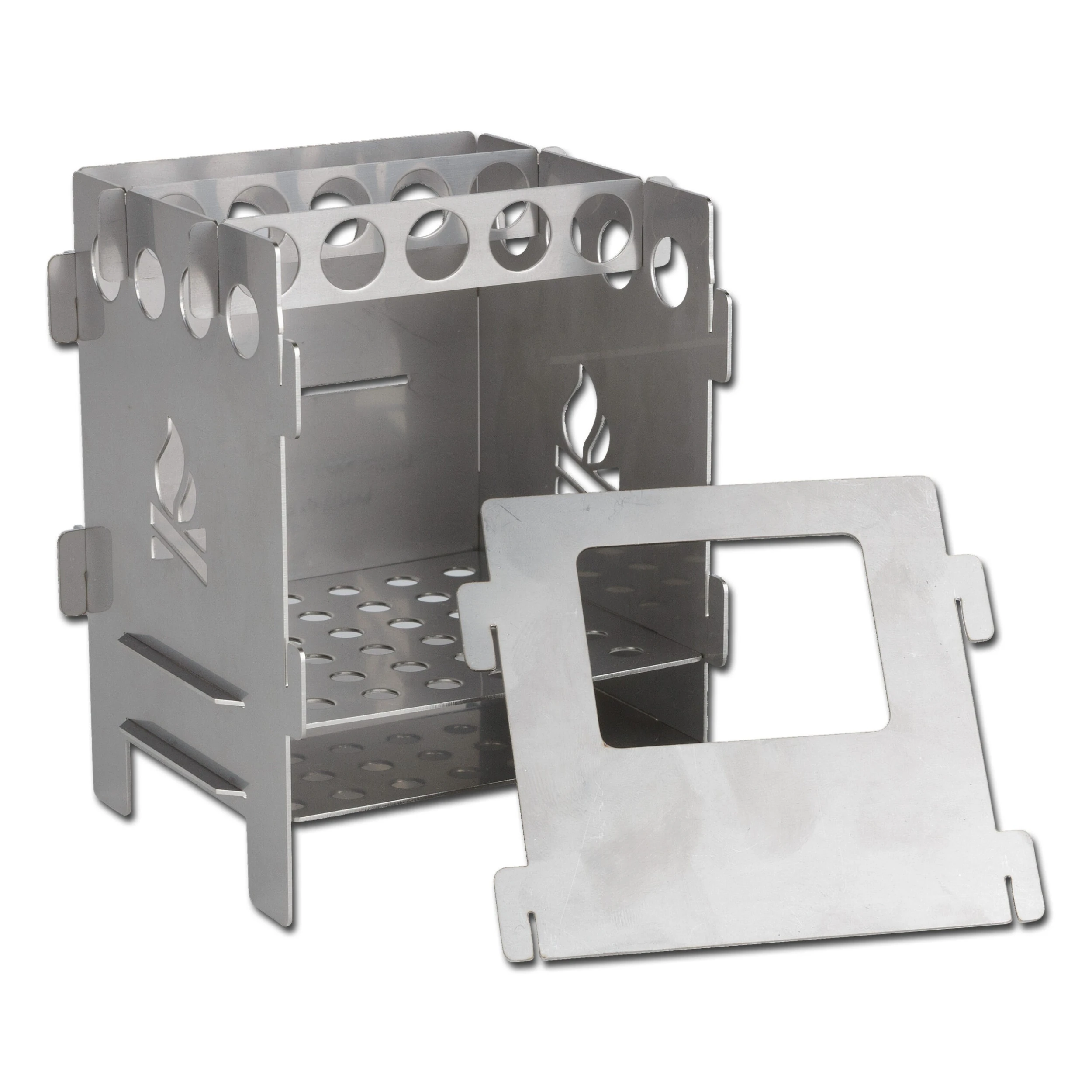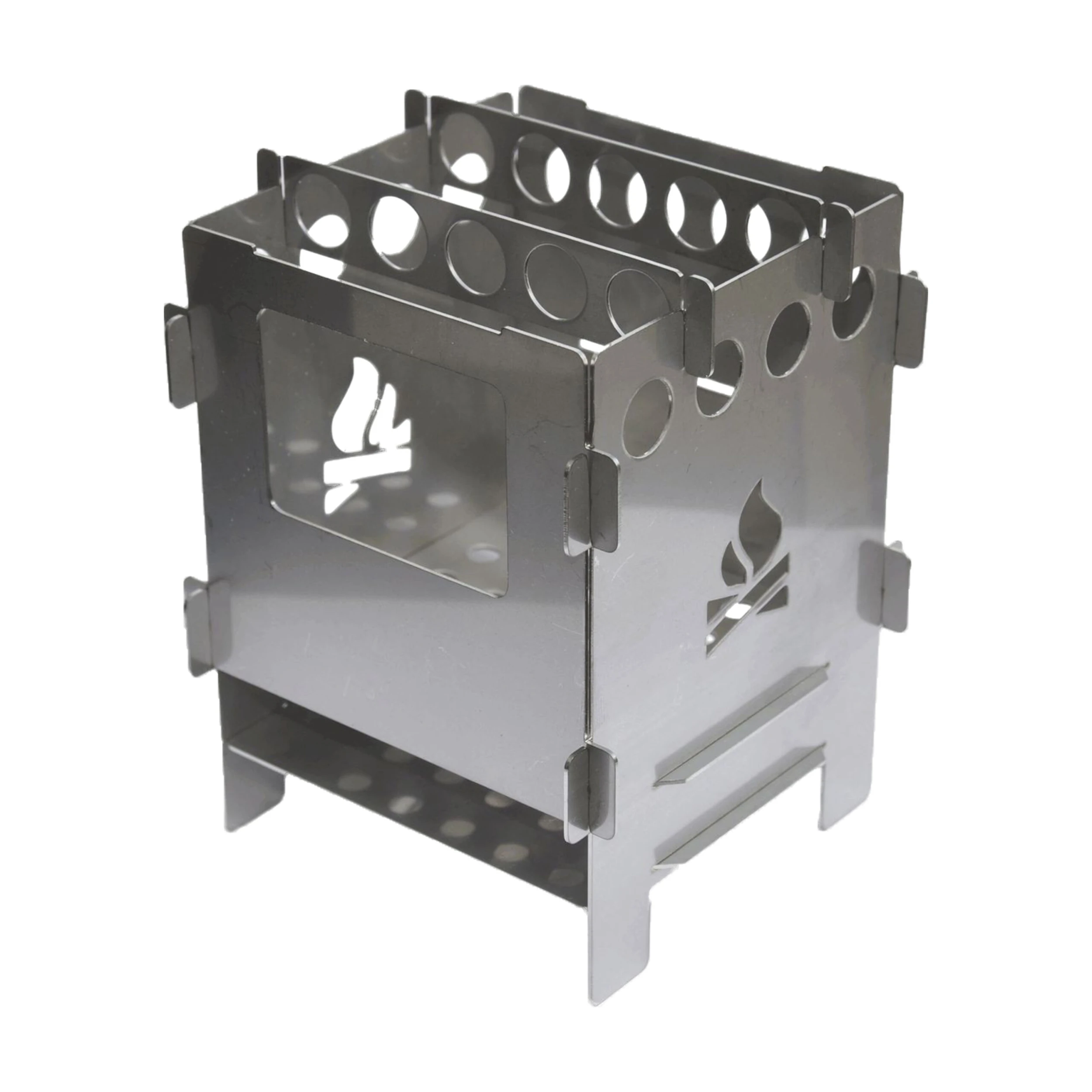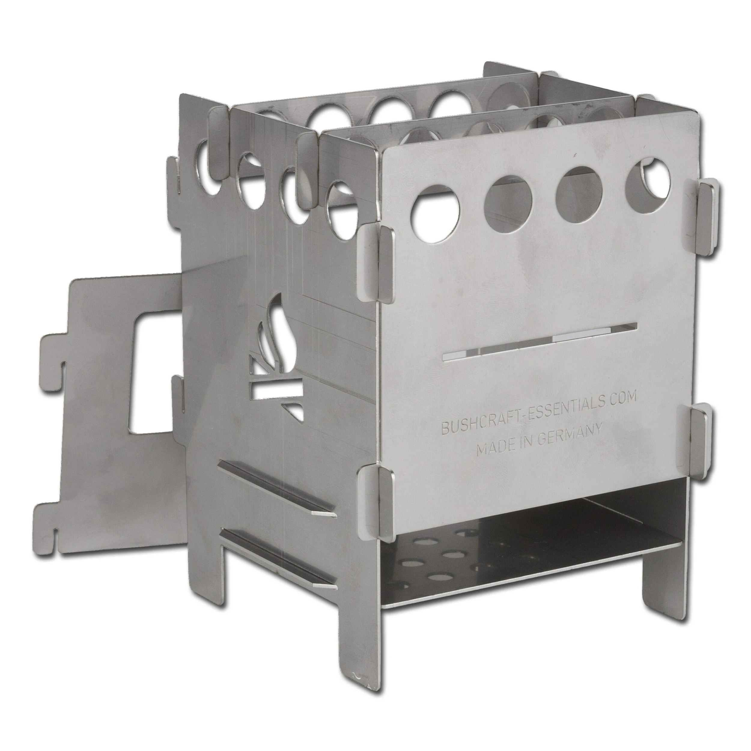 Die Bushbox von Bushcraft Essentials ist ein kleiner, handlicher und preisgünstiger Steck-Hobo-Kocher. Er passt in jede Hosentasche und liefert mit kleinem Budget eine Riesen-Leistung. Wie gewohnt mit integrierter Aschepfanne als Bodenschutz. Alternativ auch einsetzbar mit Trangia, Brennpaste, Esbit etc. oder auch als Windschutz für Brenner. Der Kocher ist komplett in Deutschland hergestellt und wird inkl. Topfauflagen-Set geliefert.