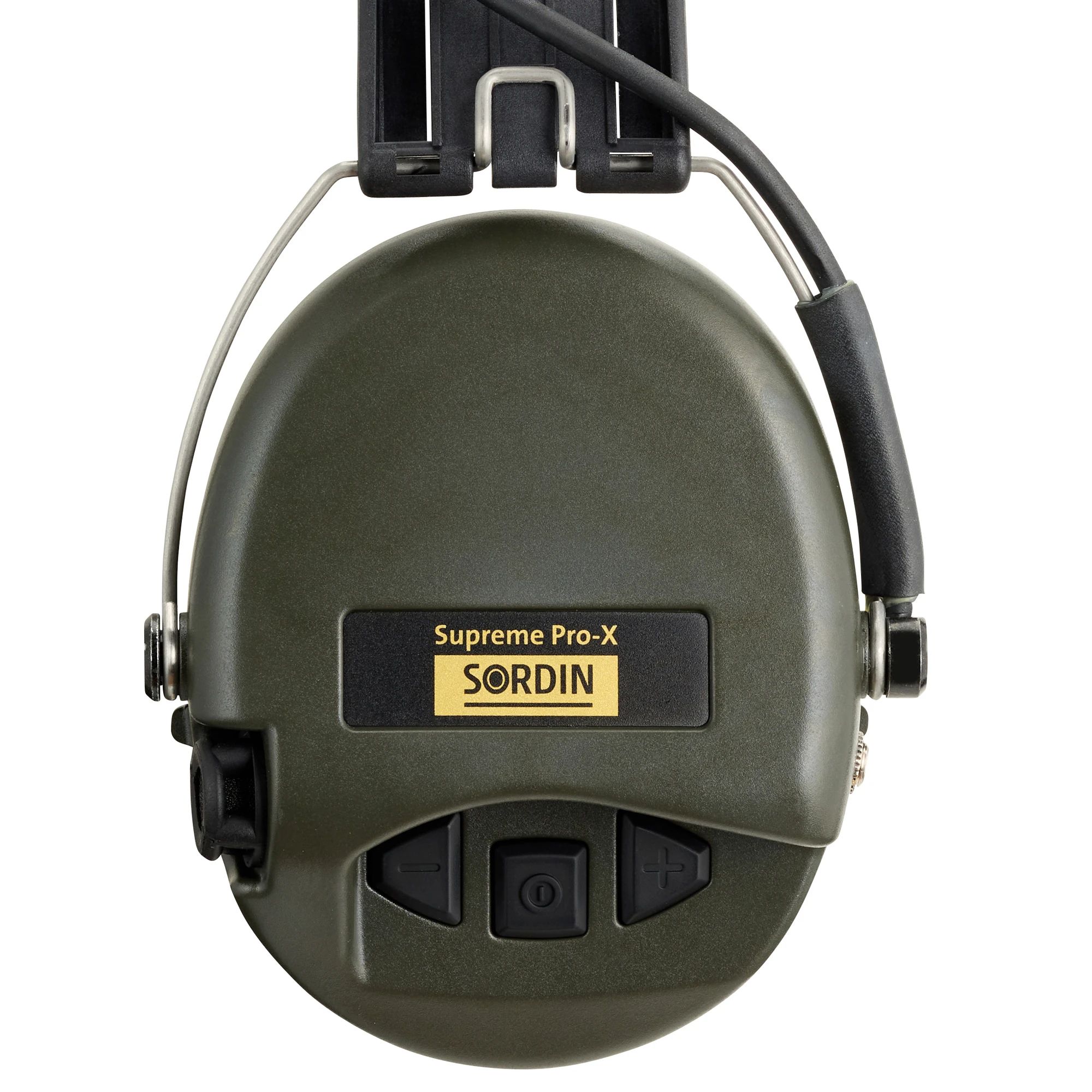 Der Sordin Aktivgehörschutz Supreme Pro-X Leder oliv kombiniert optimalen Schutz mit hoher Verstärkung, AUX Eingang und wasserdichtem Batteriefach. Der Gehörschutz kann zusammengefaltet werden und ist so platzsparend transportierbar. Die Hörmuschel ist für verbesserten Tragekomfort mit einem komfortablen Polster ausgestattet.