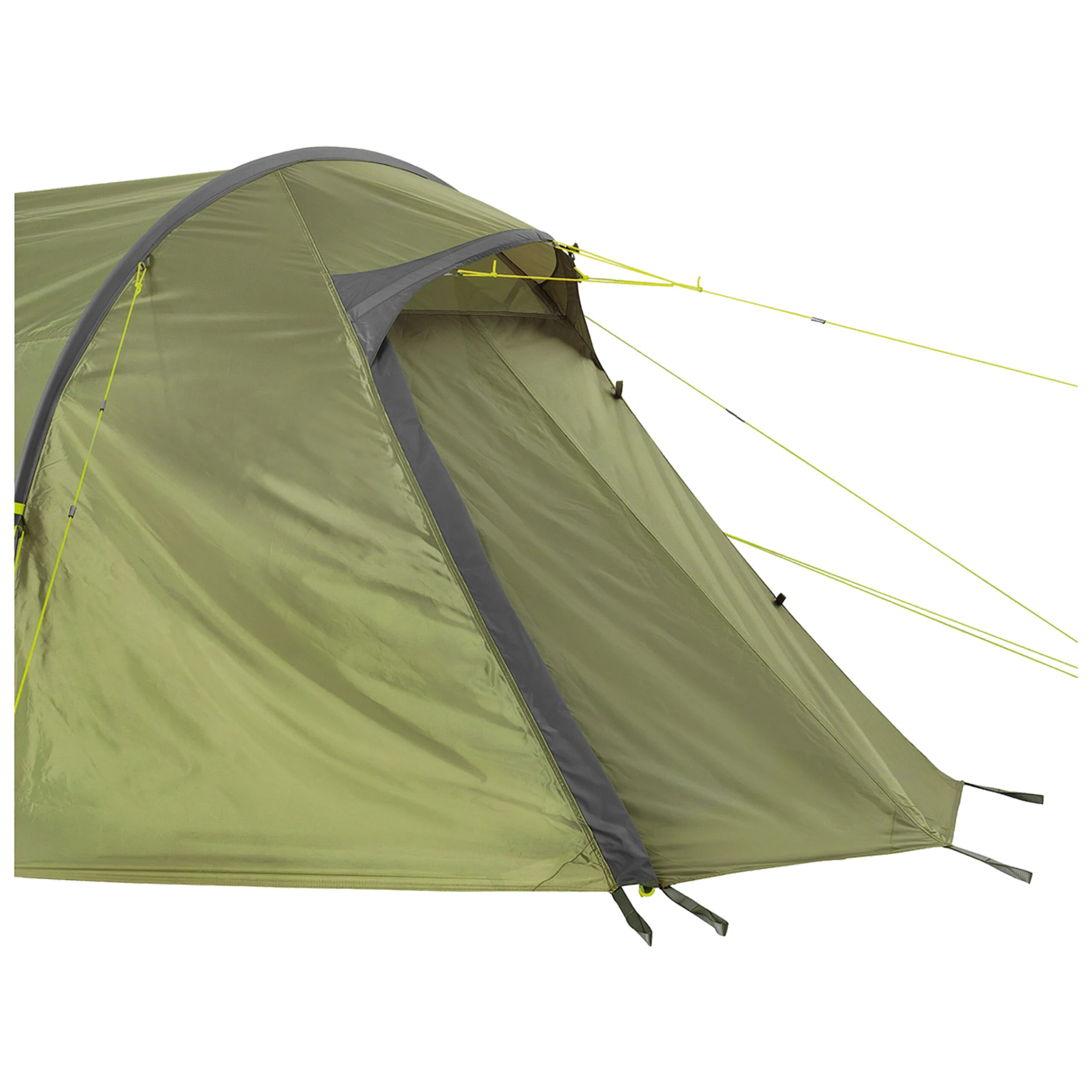 Das Außenzelt aus vierfach beschichtetem PU-Nylon hält mit einer Wassersäule von 8000 mm äußeren Einflüssen stand, während das leichte Innenzelt besonders luftdurchlässig ist. Das verwendete Zeltmaterial ist farbecht und UV-beständig, sodass Sie lange Freude daran haben. Mit einer Wassersäule von 10000 mm ist der PU-beschichtete Boden der optimale Schutz vor Nässe von unten. Innen- und Außenzelt sind miteinander gekoppelt, was für eine schnelle Aufbauzeit sorgt. Sollte das Wetter einmal zu schlecht sein, ist das Innenzelt aushängbar und kann so trocken verstaut werden. Beim nächsten Aufbau dann einfach zuerst das Außenzelt aufbauen und das Innenzelt einhängen.