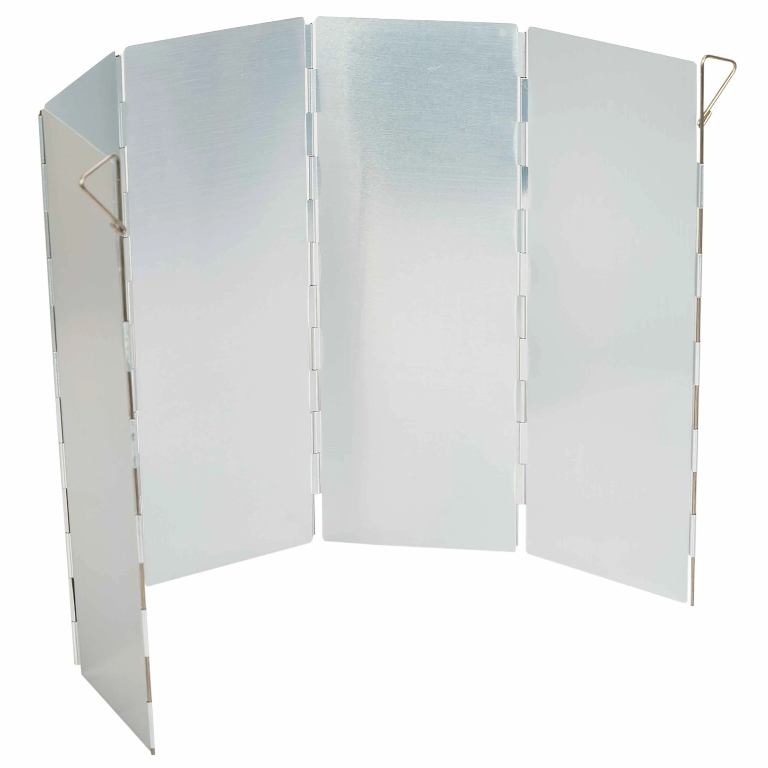 Mithilfe des Windschutzes wird die Heizleistung bzw. die Brennzeit jedes Kochers wesentlich gesteigert. Manchmal ist Kochen auch nur mit dem Windschutz möglich. Bestehend aus 5 Aluminiumsegmenten, die an beiden Enden durch Stifte gegen Umfallen gesichert werden. Bei starkem Wind sollte jedoch auch der Windschutz mit Abspannleinen gesichert werden. Höhe 23 cm. Gewicht ca. 290 g.